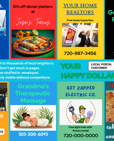 At Your Happy Dollar, we help small businesses thrive by connecting them with their local communities through affordable co-op advertising.